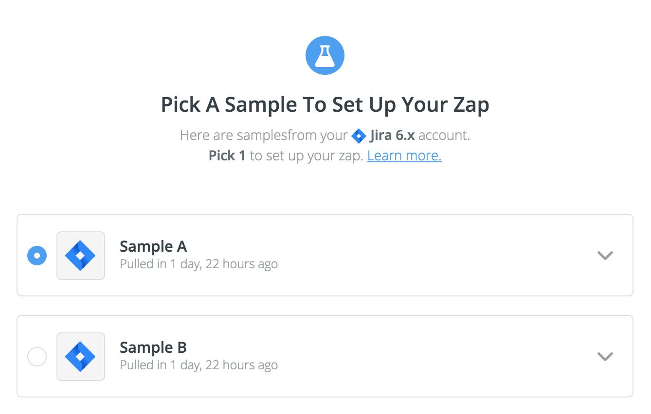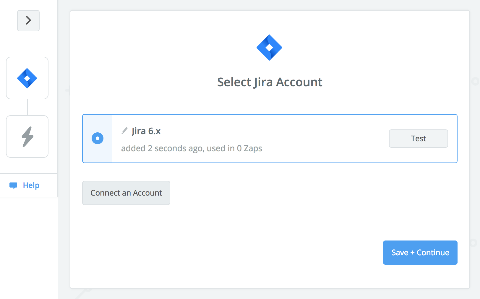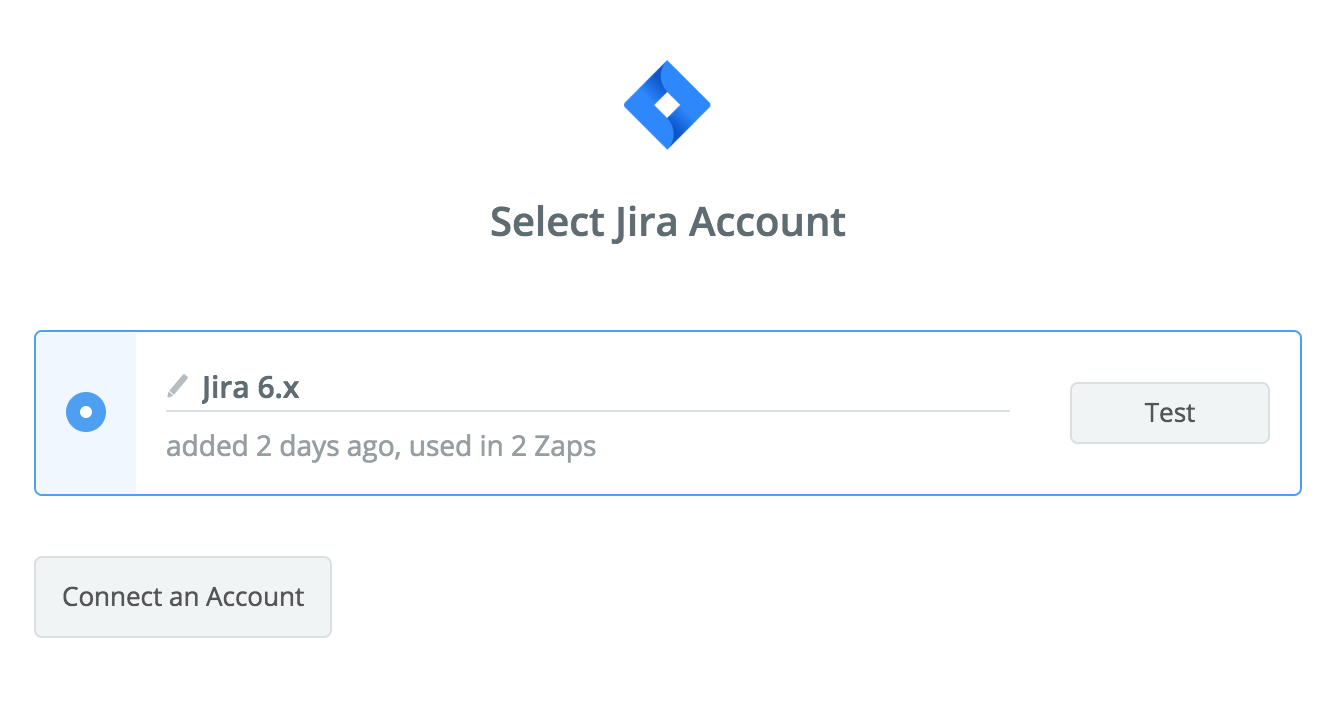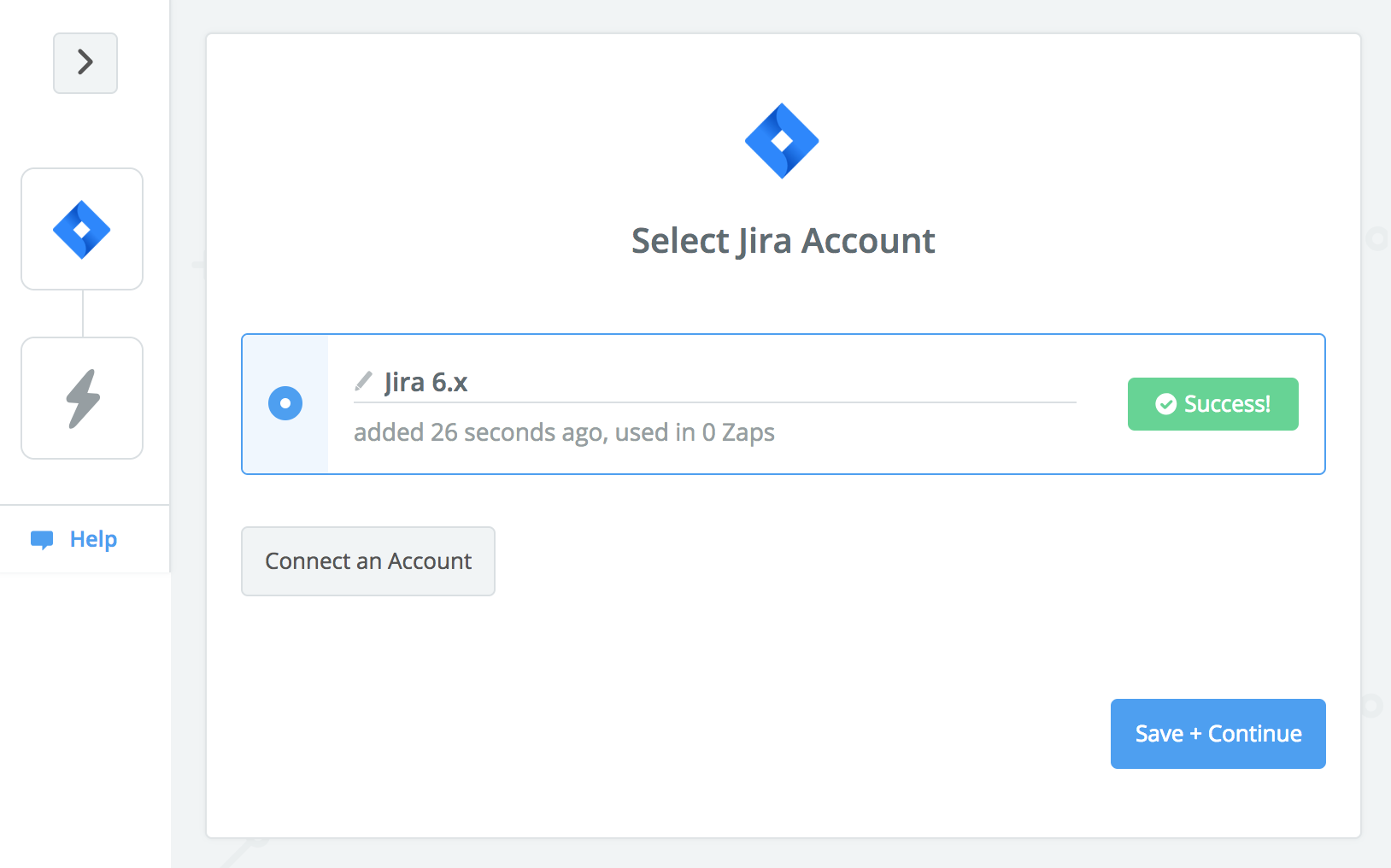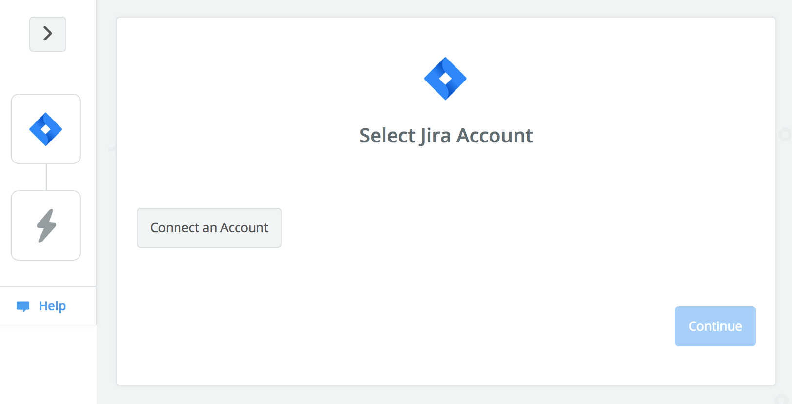 If you use Zapier and have connected with Jira, you can use that account. Otherwise, click on Connect an Account to create a new connection with Jira.