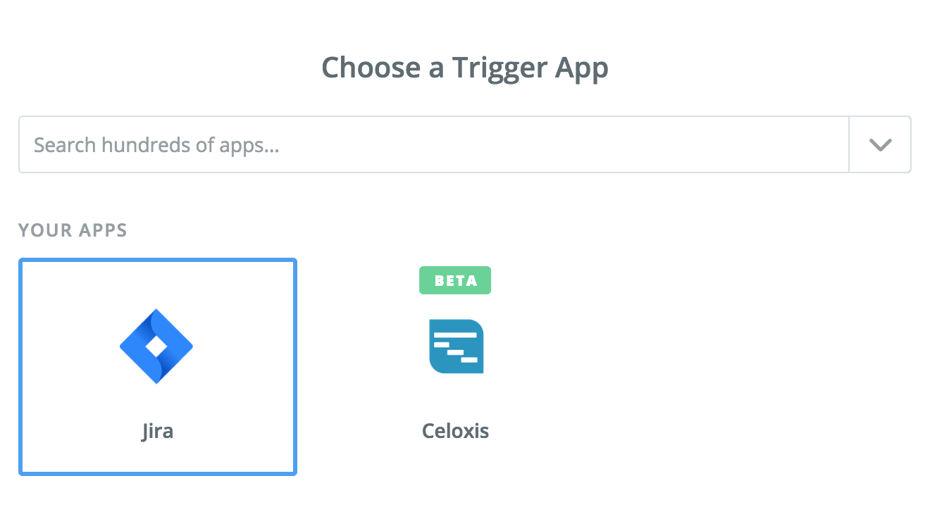 An automation in Zapier is called a zap. A zap connections two apps - a trigger app and an action app. The trigger app notifies the zap about an event and the zap then performs an action in the action app. In our case, the trigger app is Jira because it will notify our zap when an issue is created or updated. The action app, in our case, is Celoxis because that is where our zap will create and update tasks. In this guide, we will be building two zaps: