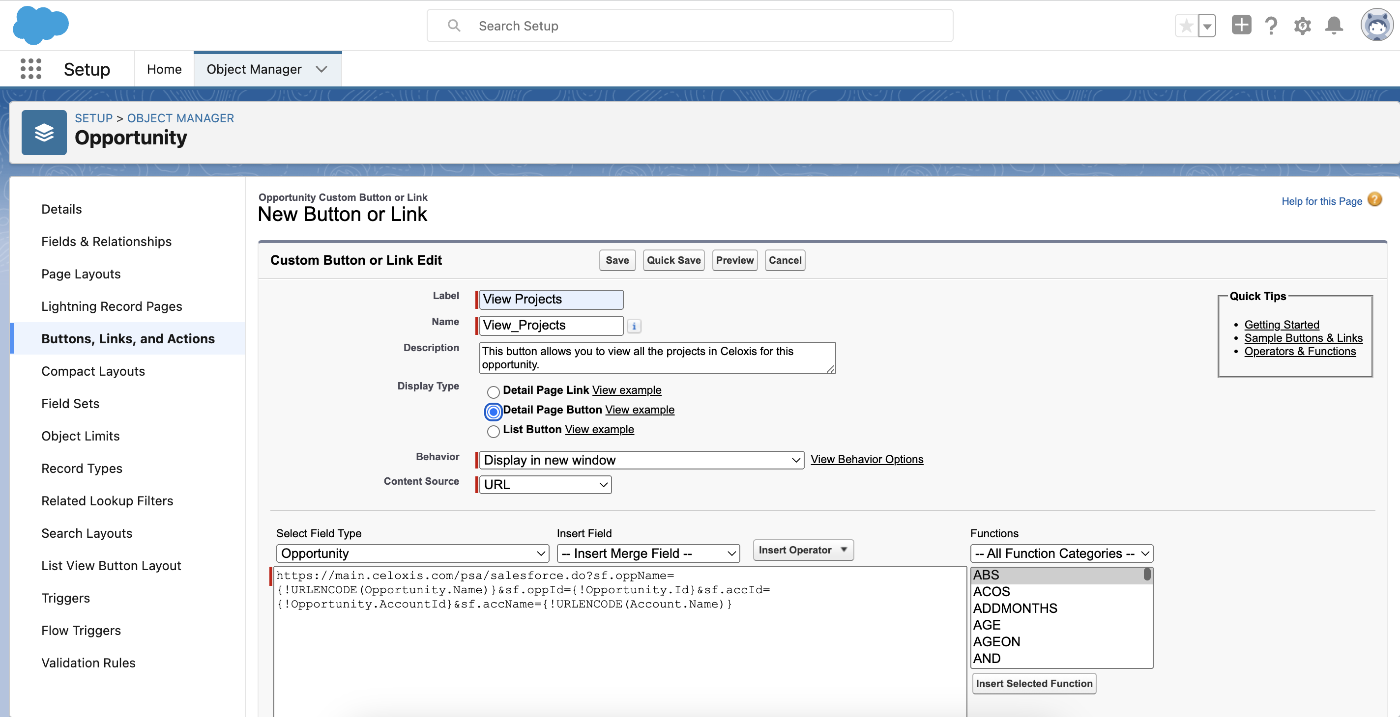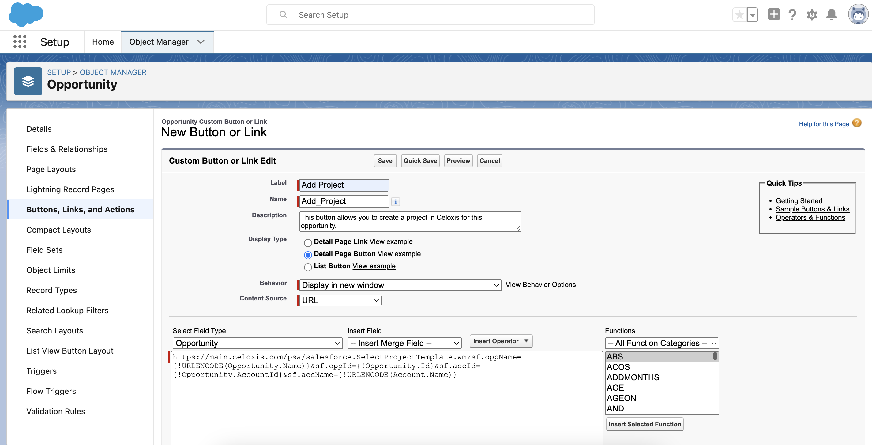https://app.celoxis.com/psa/salesforce.do?sf.oppName={!URLENCODE(Opportunity.Name)}&sf.oppId={!Opportunity.Id}&sf.accId={!Opportunity.AccountId}&sf.accName={!URLENCODE(Account.Name)}
