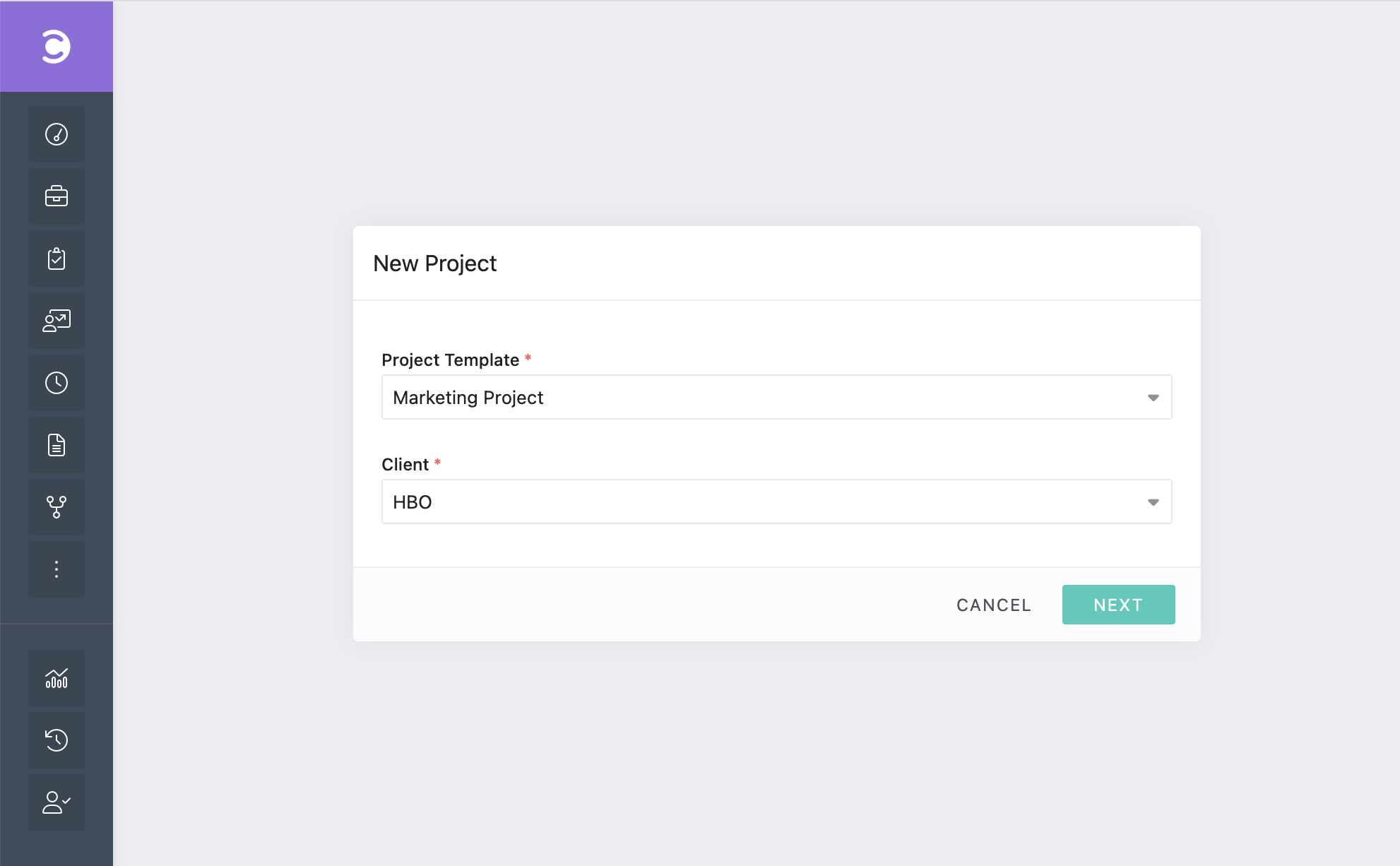- Upon logging in with the Celoxis credentials, you will see a pop up to select the Project Template from the available list.