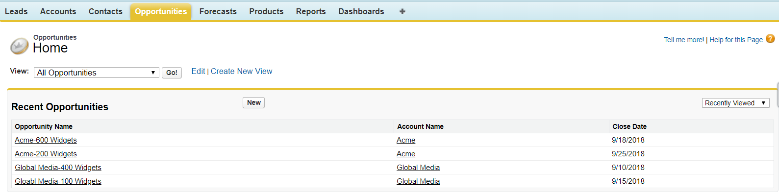- Click on an existing Opportunity or Create a new one by clicking on New.