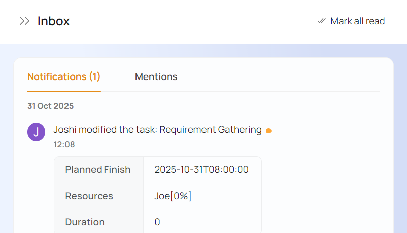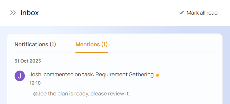 Clicking on any item in the panel will open that item's panel while clicking on Mark All Read will mark all unread notifications as read.