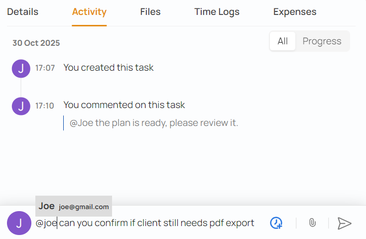 - Adding a comment on a task or updating its progress.