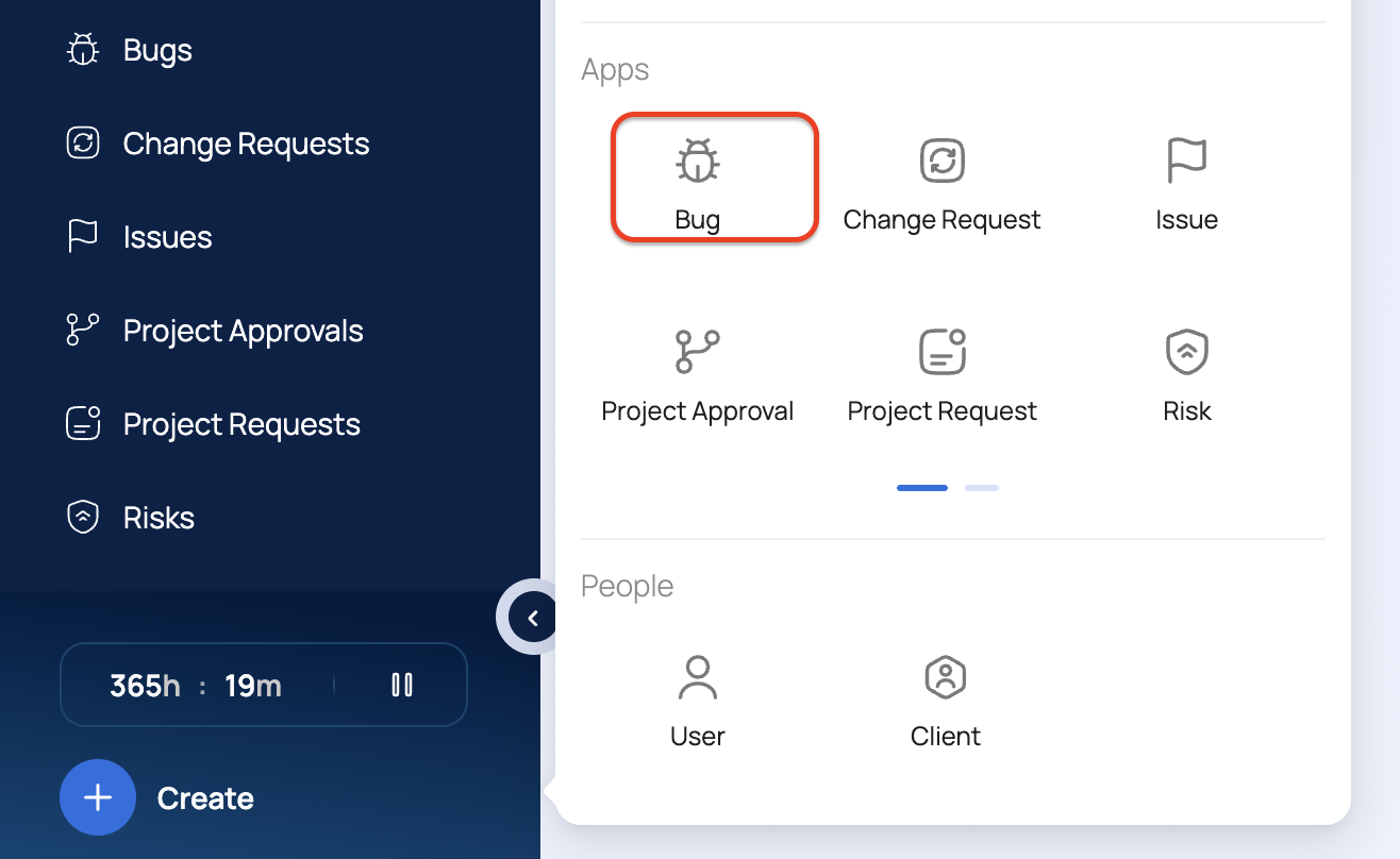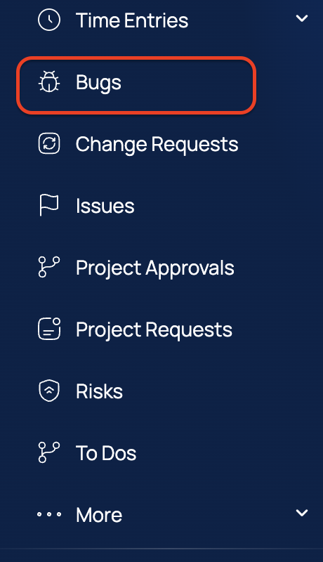 Bugs also appears as an option on the ▸ Apps ▸ menu.