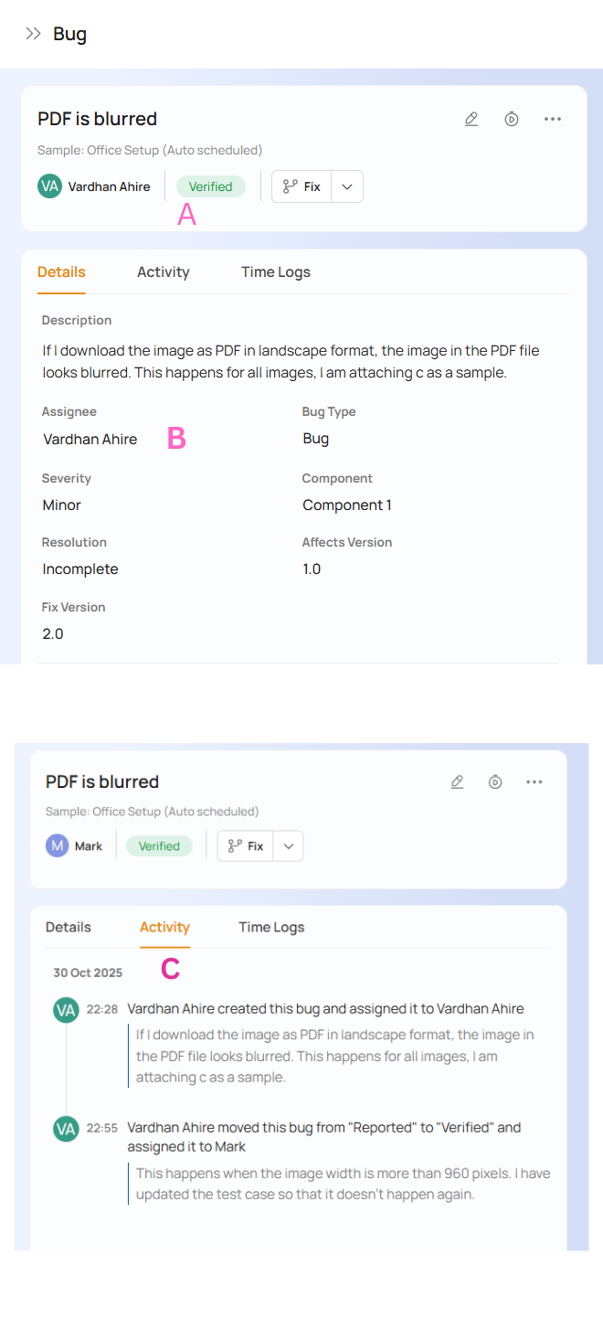 Vardhan receives an email notification about his being assigned to this verified bug. He clicks on the link and sees the following: