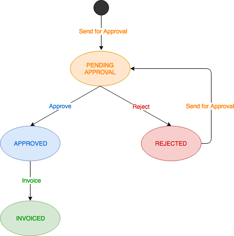 An expense in Celoxis passes through various states as shown below.