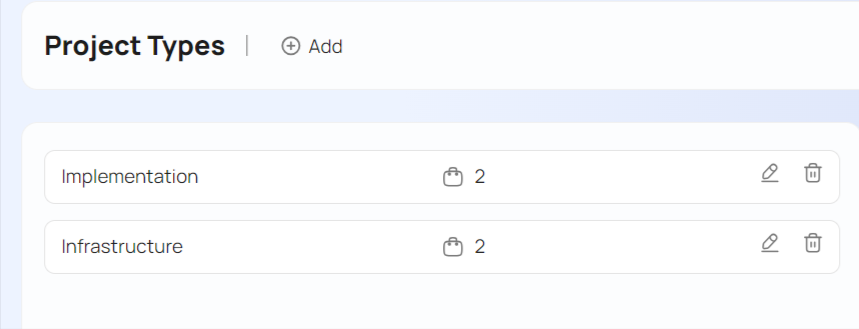 - Customize project types