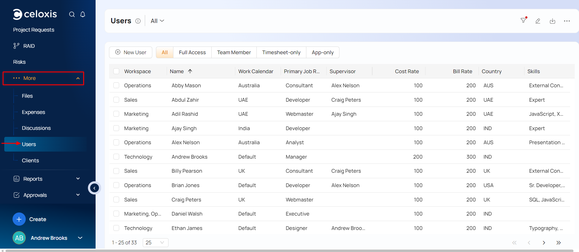 Celoxis allows you to create a user that is "like" some other user – the new user will inherit dashboards, notification preferences, security privileges, etc. thus making it very convenient for you to create similar users.