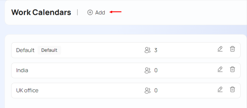To enter holidays, go to Top Menu ▸ ▸ Admin ▸ ▸ Work Calendars and then click on the tab.