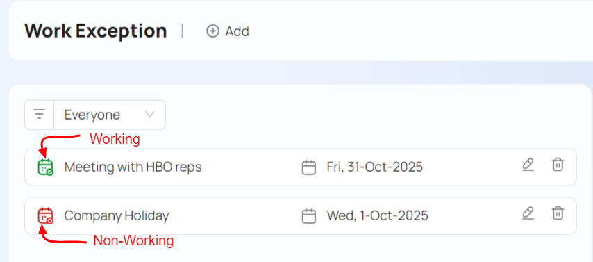 - Set up work calendars