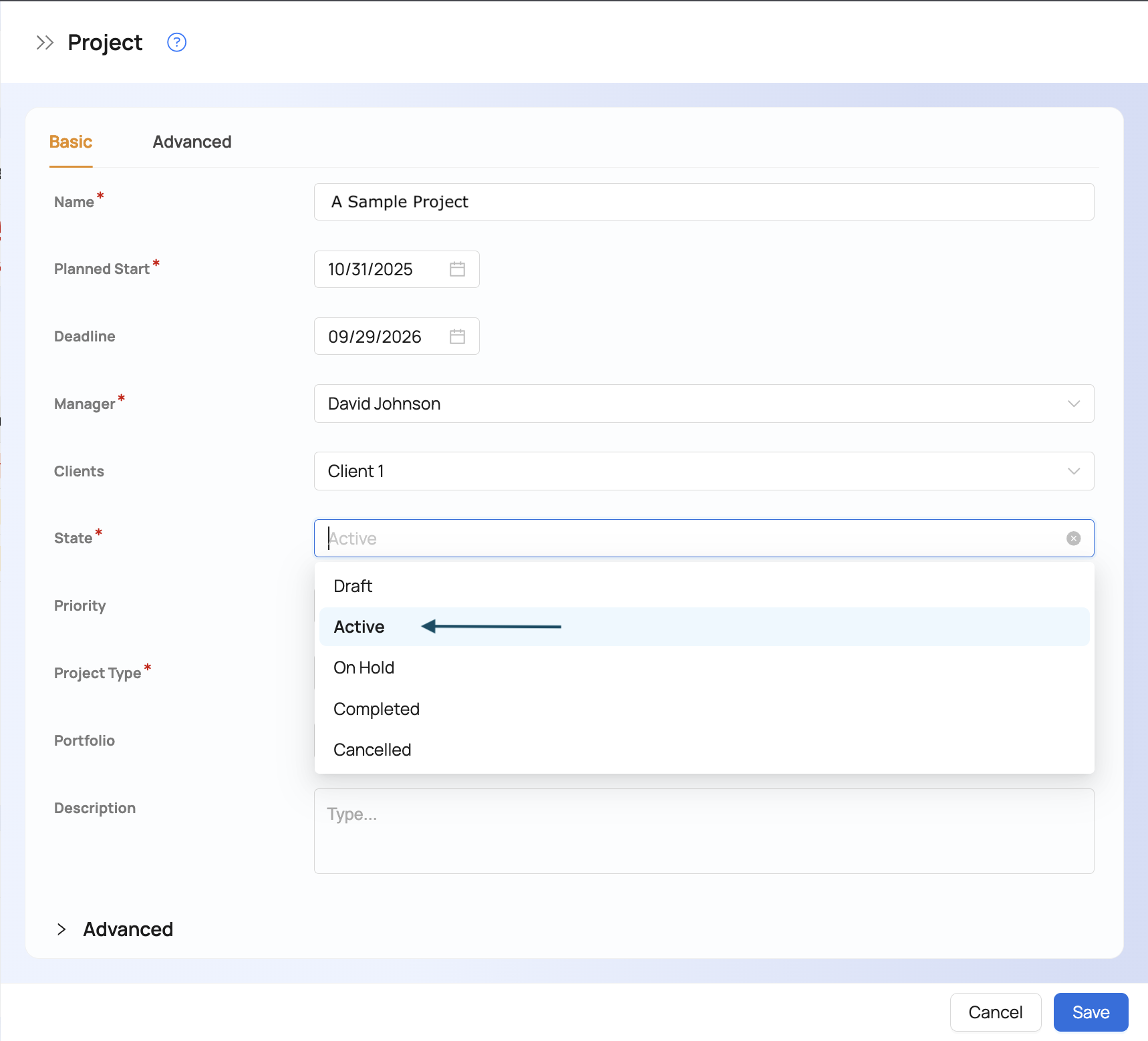 Mark this project as active which will indicate to the system that this progress is underway. This will enable email notifications and color indicators for this project and you shall get a better experience of the software's capabilities.