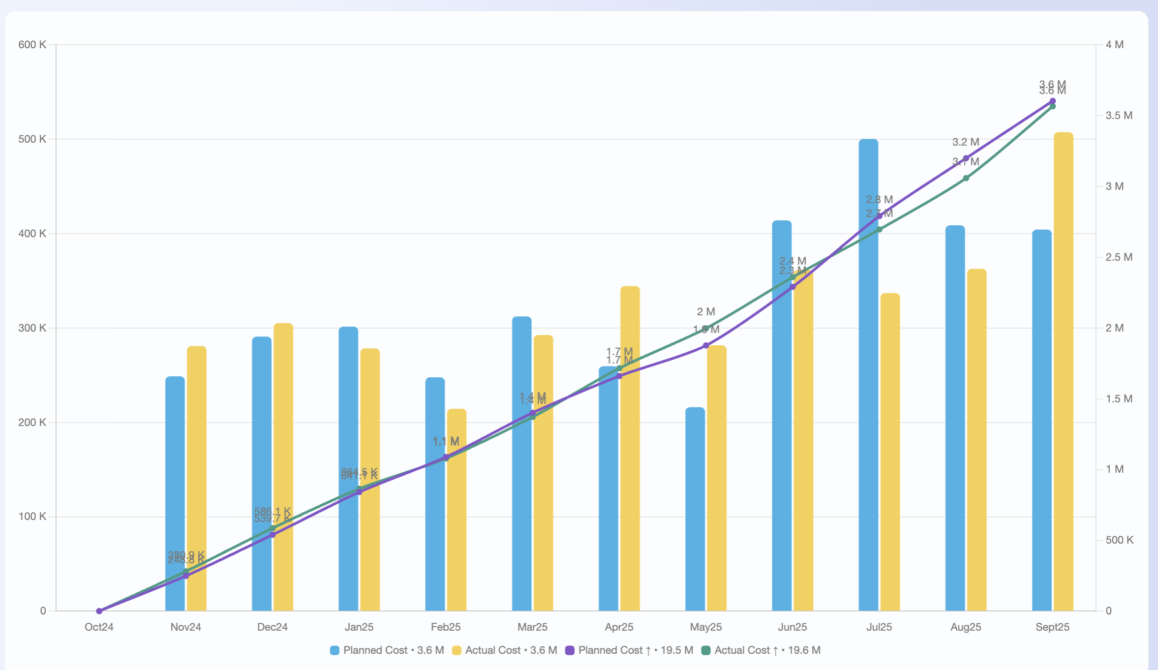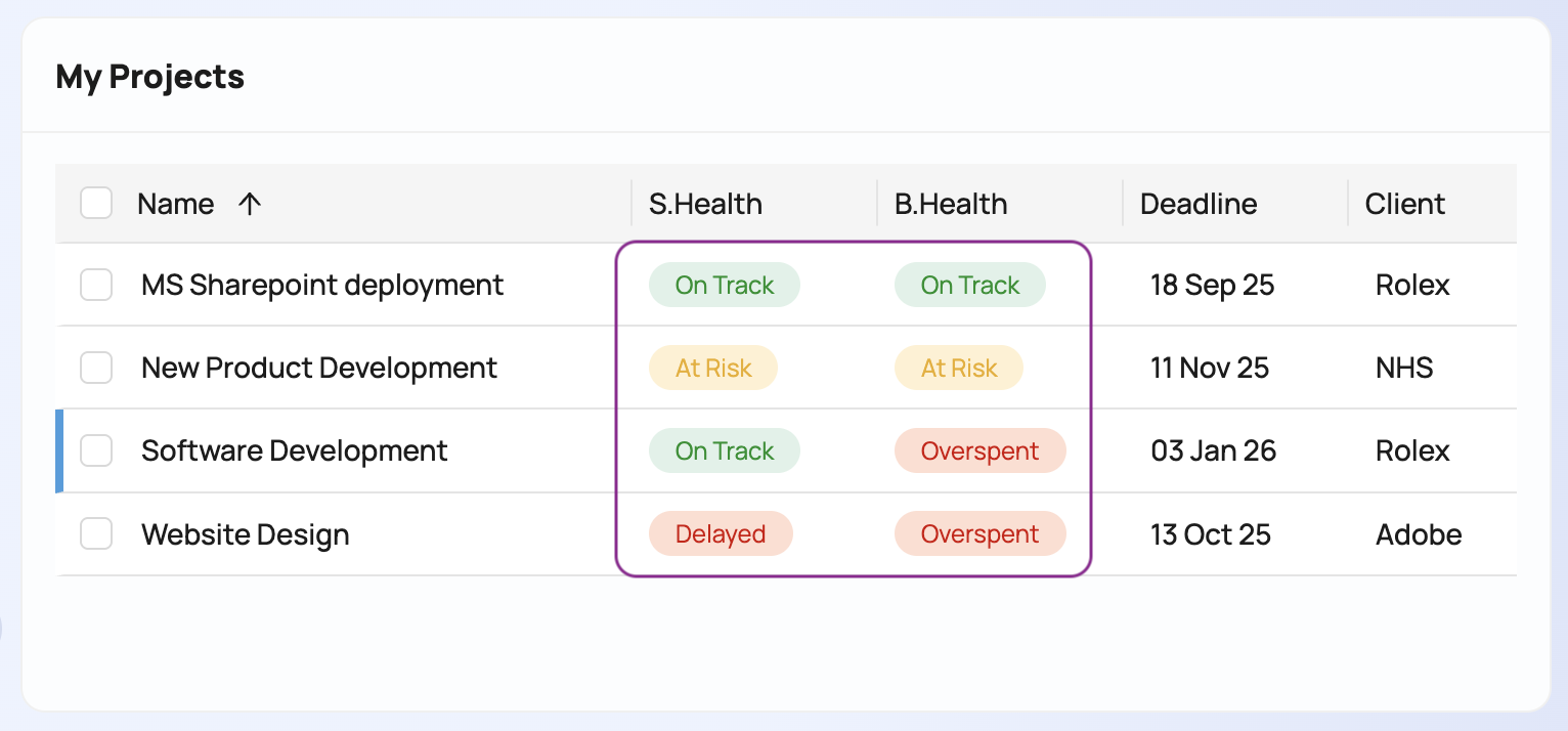As team members report progress on their tasks, the system automatically calculates the estimated completion dates and costs of tasks and projects. This is indicated using RAG indicators.