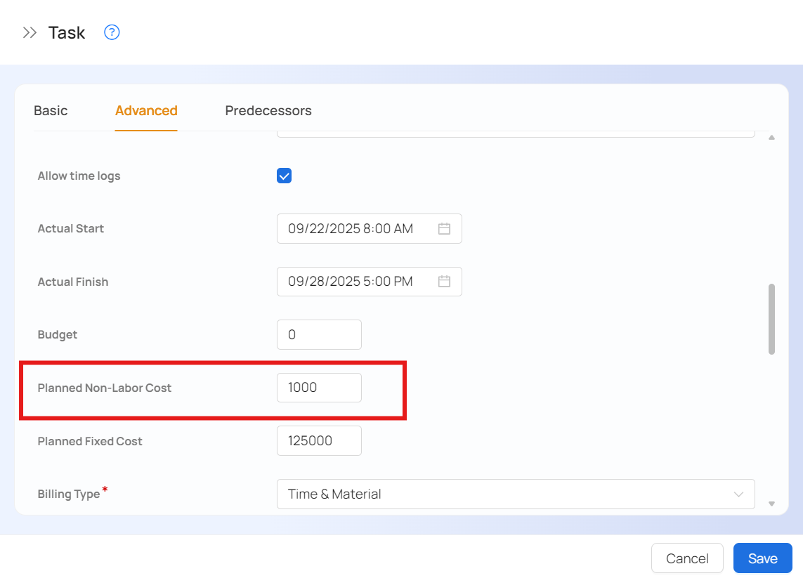Displaying Planned Cost in the Gantt ChartNow let’s say you had to purchase computers worth $1000 for the task #2 on the figure above. You can enter this amount in the Planned Non-Labor Cost field for a task.