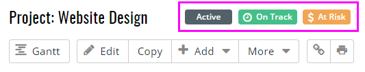 | Visual Health Indicator | Colored RAG On Track/At Risk/Off Track labels, indicating the status of the cost in comparison to the its budget (if specified), or its estimated cost. This is shown for each task as well as the project |