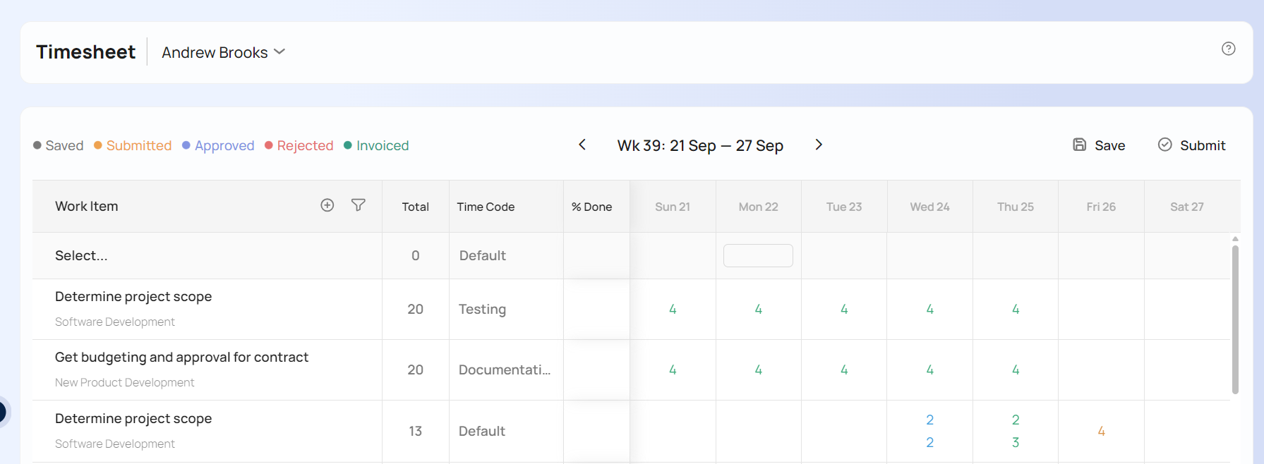 Yes. Multiple time and expense codes can be set by the Celoxis administrator in the Timesheet and Expenses sections of the Administration page. Typical expense categories may include Travel, Meals, Office Supplies, Vendor fees, etc. Typical time codes may include Meetings, R&D, Marketing, Training and Onboarding, PTO, Vacation, etc.