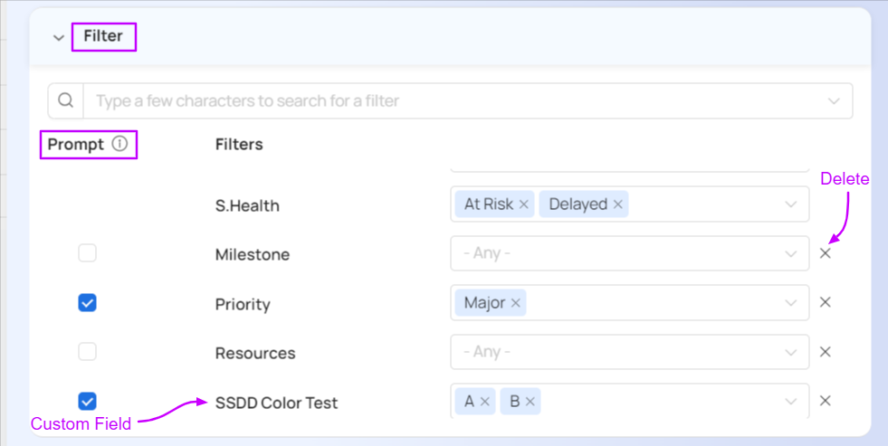 Filtering allows you to exclude unwanted data in your reports. Celoxis provides comprehensive and powerful filters for a large number of attributes including your custom fields.