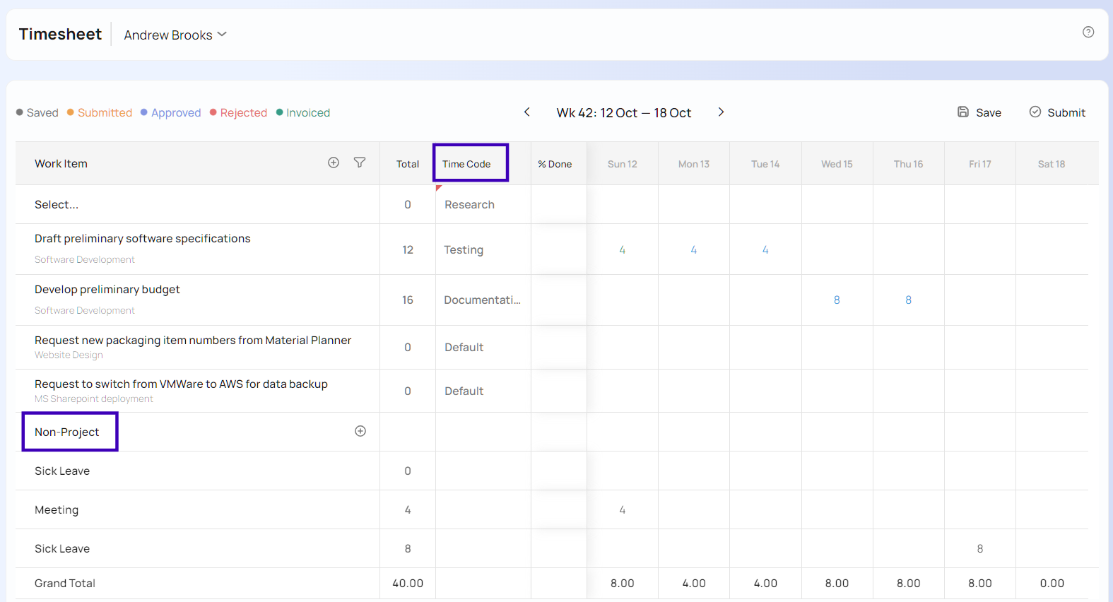 Non-project time codes