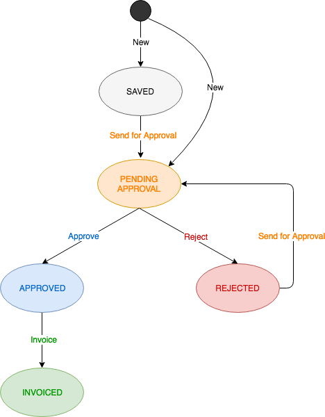 A time entry in Celoxis passes through various states as shown below.