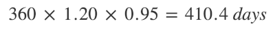 We are now dealing with an estimate of 360 days instead of our initial 270. Finally, we have to make the adjustments for weather and location of suppliers: