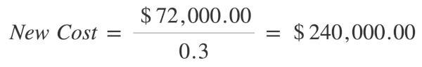 The new total cost of the project is $240,000.00, and the revised cost of completion is simply the updated total cost minus the already spent Research amount ($240,000.00 - $72,000.00 = $168,000.00). Finally, the reviewed estimate for the Design phase is 50% of the new total cost of the project: $240,000.00 0.5 =$120,000.00 .